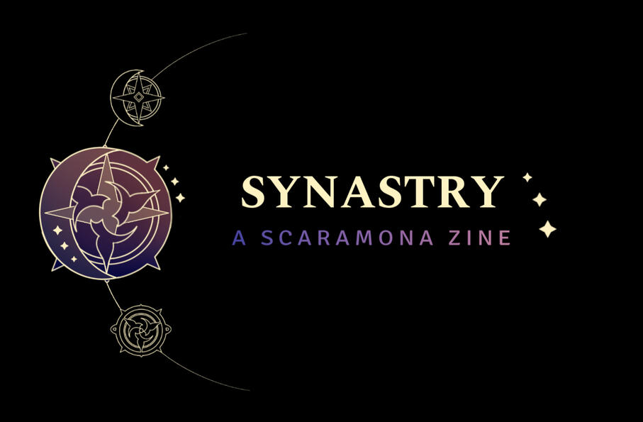 A: Synastry revolves around the romantic relationship between Mona & Scaramouche from Genshin Impact. The overarching theme is constellations, stemming from their key interactions surrounding the fallacy of the stars.Q: Will this be a physical or digital zine?